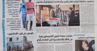 أبرزت صحف السبت اهتماما خاصا بالملف الأمني؛ حيث تناولت ما وصفتها بالإجراءات المشددة لتأمين احتفالات عيد القيامة وشم النسيم.. خطة للانتشار السريع وكلاب بوليسية للكشف عن المفرقعات.. وأشارت إلى مقتل من وصفتهما بتكفيريين شديدى الخطورة بوسط سيناء… الداخلية ترصد نصف مليون جنيه لمن يدلى بمعلومات عمن وصفتها بالعناصر الإرهابية المتورطة …