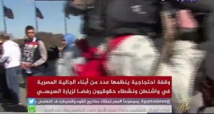 تظاهر المئات من المصريين المقيمين في الولايات المتحدة الأمريكية، احتجاجا على زيارة قائد الانقلاب العسكري، اليوم الاثنين، ونظم العشرات من أبناء الجالية المصرية في واشنطن ونشطاء حقوقيون وقفة احتجاجية أمام نصب واشنطن بالتزامن مع استقبال عبد الفتاح السيسي بأمريكا. وتنكر رجل في زي السيسي، مرتديا بدلة عسكرية وقناعا يشبه السيسي، …