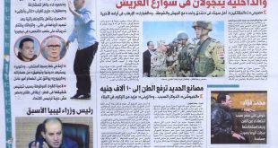 تناولت صحف السبت عدة قضايا؛ حيث أبرزت تصريحات وزيري الدفاع صدقي صبحي والداخلية مجدي عبد الغفار من العريش أنه لا تهاون فى حماية أمن مصر.. وأن سيناء ستظل رمز إرادة الشعب على الإرهاب.. عبدالغفار: الجيش والشرطة في طليعة المحاربين للتطرف. واعتبرت صحيفة “الوطن” الزيارة رسالة أمان من قلب سيناء، وأشارت …