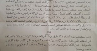 تقدم عمال النظافة بمركز المطرية بشكوى فى النيابة الإدارية ضد رئيس المجلس بعد سبهم بالدين وقذفهم بألفاظ بذيئة . وأبدى العمال استئايهم وقالوا أنهم لم يقصروا فى العمل وأنه هناك لائحة جزاءات تطبق علم فى حال تقصيرهم ، وأنه كونه ريئس المجلس لا يعطيه الحق فى إهانة وسب موظفيه .