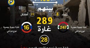 أكمل القراءة »بمعدل عشر غارات يومياً .. حمص تخسر أكثر من ١٠٠ شهيد خلال شهر آب