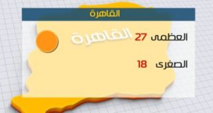 طقس اليوم معتدل نهارا .. والعظمى بالقاهرة 27 درجة