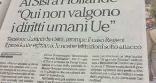 رصدت صحيفة إيطالية، اليوم الثلاثاء، الاعتراف بالقمع وانتهاك حقوق الإنسان الذي سقط فيه قائد الانقلاب السيسي، عندما قال للرئيس الفرنسي “هولاند”: “لا قيمة هنا لمعايير حقوق الإنسان الأوروبية”، وقامت الصحيفة بـ(ترجمة حرفية) لغباء الجنرال. وذكرت وكالة “الأناضول” أن الرئيس الإيطالي سيرجو ماتاريلا، قال يوم الجمعة الماضي: إن بلاده لا تريد …