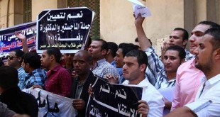 نظم العشرات من حملة الماجستير والدكتوراه، اليوم الأحد، وقفة احتجاجية أمام مجلس وزراء الانقلاب للمطالبة بالتعيين، وذلك للمرة الحادية عشر على التوالى. وقام المتظاهرون بالتجمع بشارع قصر العيني أمام مبنى الحكومة، فيما قامت ميليشيات الأمن بحصار المظاهرة، وسط هتاف “واحد اتنين رئيس الوزراء، عايزين نشتغل” و”حقنا وحنموت عليه”،فيما حملوا عدة …