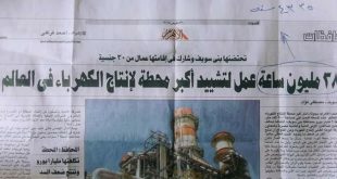في واحدة من بين سقطاتها المعتادة، واصلت أعرق الصحف المصرية “الأهرام” خداع ملايين المصريين عبر استعراض لما قالت إنه “أكبر محطة لإنتاج الكهرباء فى العالم، التي أقيمت على مساحة 500 ألف متر، بتكلفة 2 مليار يورو بمحافظة بنى سويف، أنشأها تحالف من شركتين عملاقتين: الأولى ألمانية والثانية مصرية، بالتعاون مع …