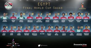 أعلن الجهاز الفني لمنتخب مصر الأول، بقيادة الأرجنتيني هيكتور كوبر، القائمة النهائية المشاركة في كأس العالم، روسيا 2018. ويستهل منتخب مصر، مشواره في كأس العالم، بمواجهة أوروجواي، المقرر لها يوم 15 من شهر يونيو الجاري. ويتواجد منتخب «الفراعنة» في المجموعة الأولى بالدور الأول بكأس العالم، رفقة منتخبات، روسيا، أوروجواي والسعودية. …